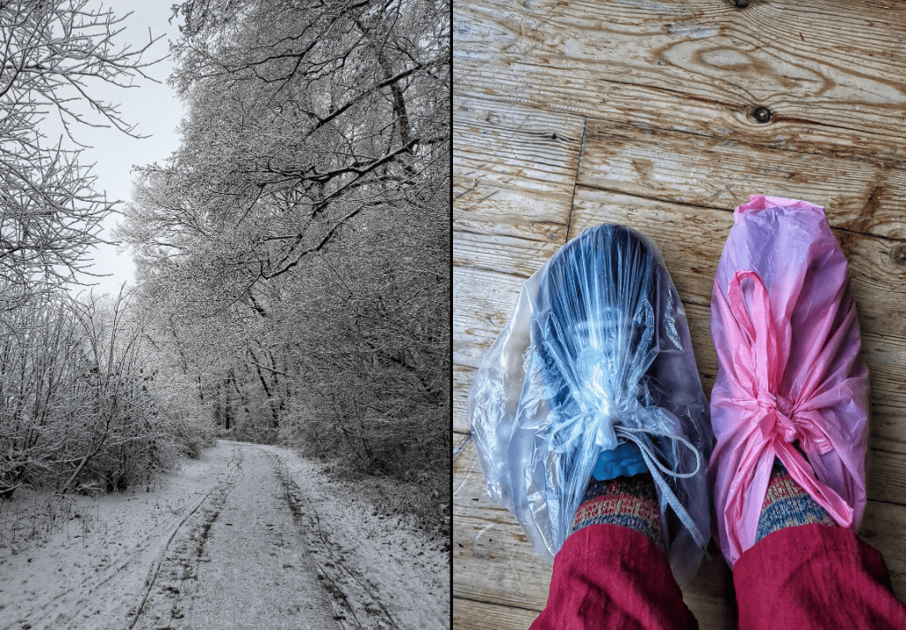 If you are traveling with Trailrunner shoes in the middle of a snow storm you better get creative.