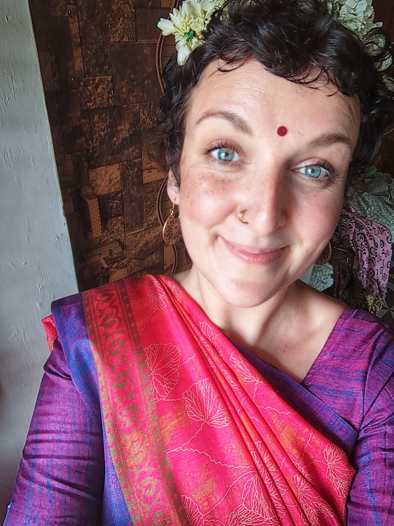 In the beginning, thoughts about cultural appropriation flickered through my mind. Western mental frameworks trying to keep up. But they dissolved quickly. Everywhere I went, women reacted the same way when they saw me in a sari. They touched the fabric. Tugged gently at the drape. Smiled wide. Asked for photos. There was no debate here like the ones I’ve had about my dreadlocks in the past — and those, notably, only ever with white people.