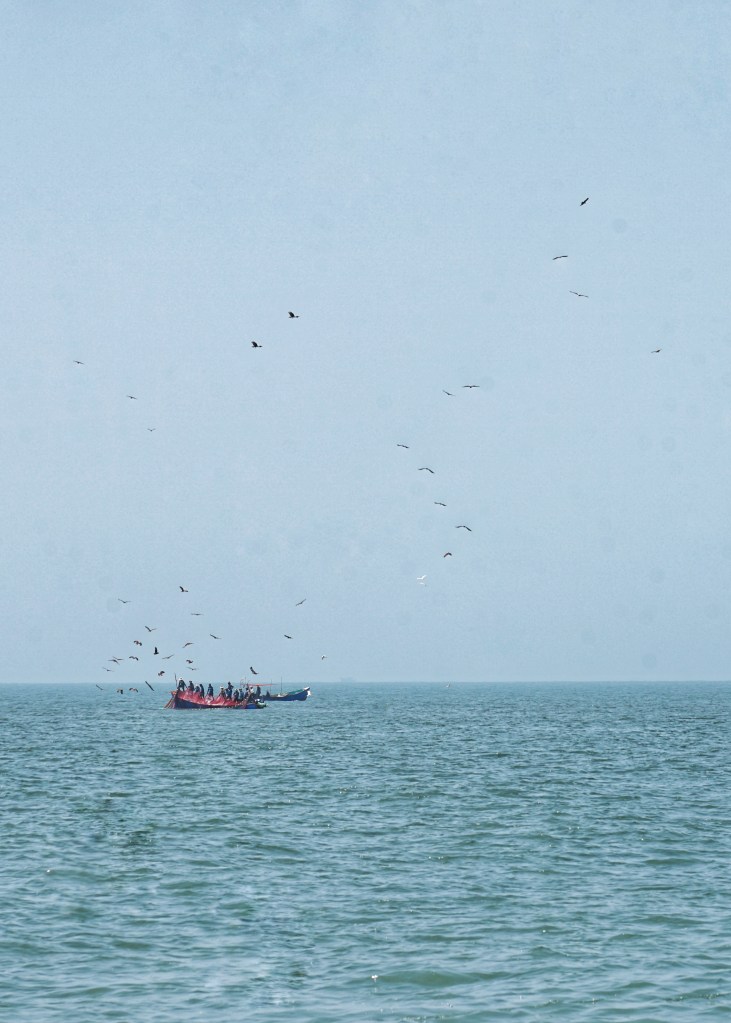 These days I feel pulled in both directions: overwhelmed in the bustle, soothed in the quiet. I experience the Indian spirit as constant presence — alive in waves, fishing lines, laughter, elders who feed you without words, crabs vanishing into sand, dolphins leaping like breath made visible. And yet, we have come to a quite touristy place. I notice something shift inside me. Not judgment — not exactly — but a subtle tightening. A question. How much presence can a place hold when it is constantly being looked at? When landscapes become backgrounds and lives become scenery?