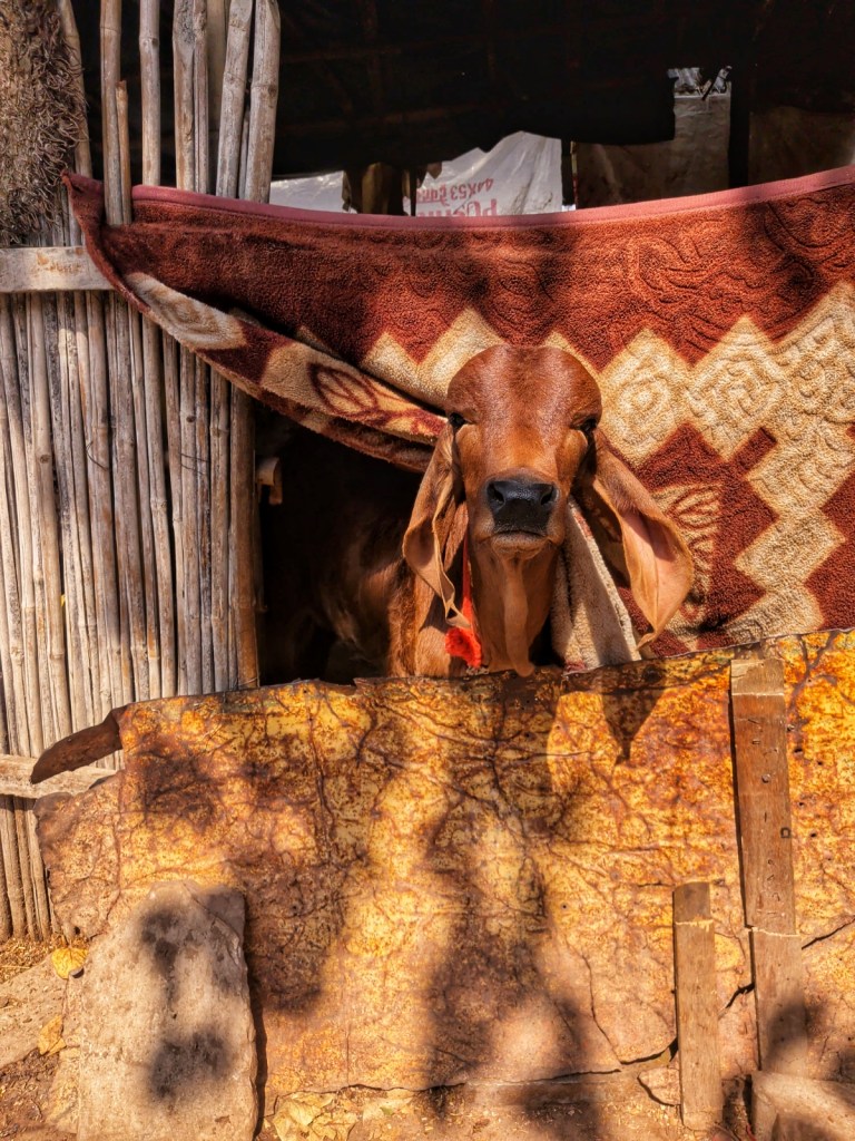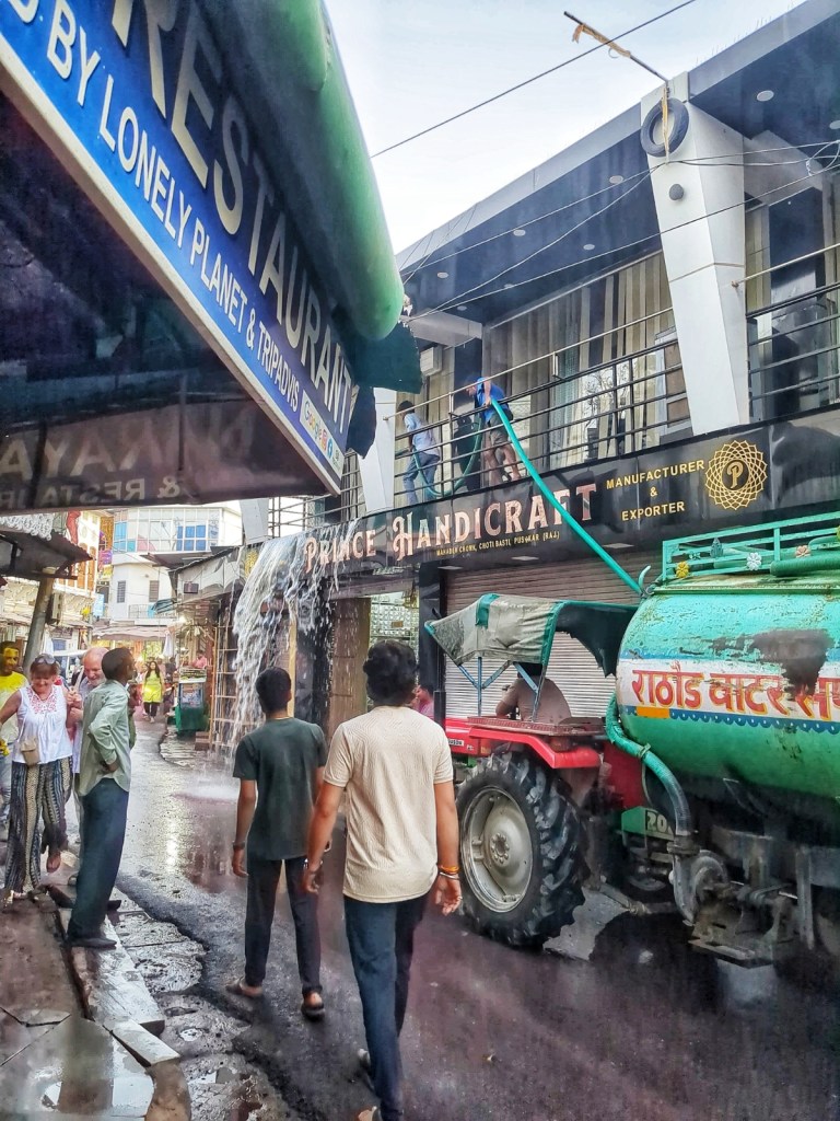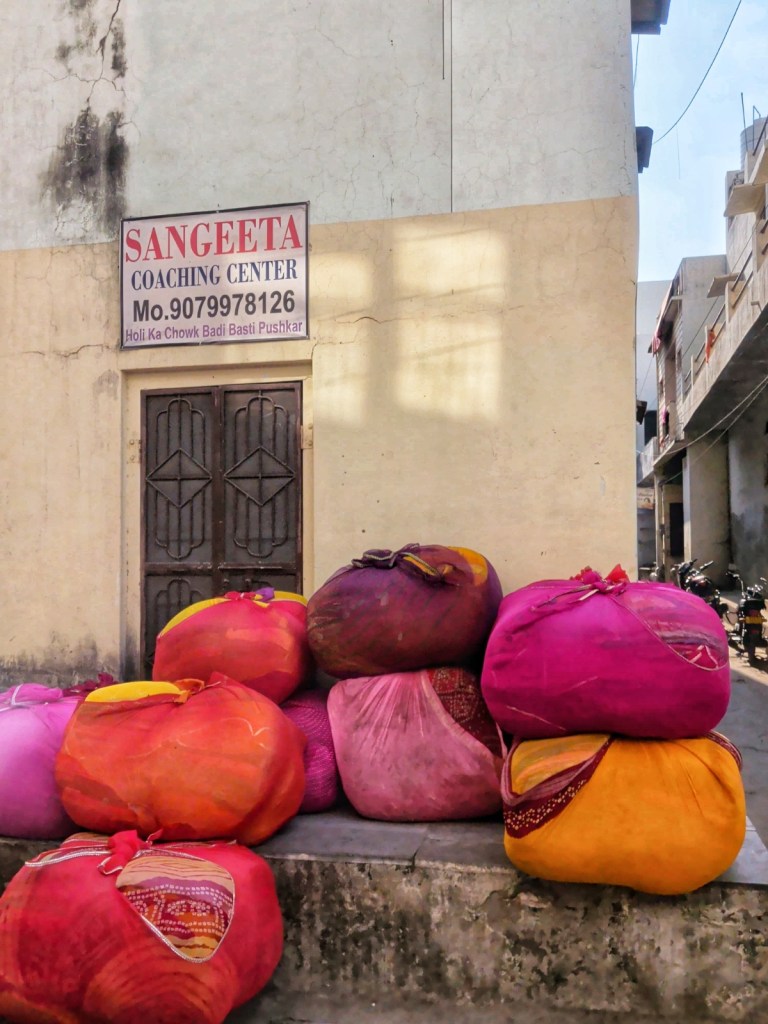 On our first day, we meet two Danish guys: Richard and Kim. They’re here for a reason that feels almost cinematic. Richard is a documentary filmmaker, chasing the idea of making a film about the traditions of Rajasthani gypsy communities. Kim is with him, part companion, part witness to the process. Through them, we meet a woman from one of these communities. She invites us to her home for dinner the following Monday. And it is beautiful, in parts. But also… not simple. There’s warmth and laughter. But underneath it, something else keeps pulling at the edges. A quiet but persistent expectation. Not spoken directly, but present. It starts small. A mehndi on my hand that feels more like a transaction than a gesture. Then the payment for it changes into food and than something else entirely – suddenly we’re contributing 1500 rupees for oversized canisters of cleaning supplies and large bags of rice. And of course, we could have walked away. That’s the truth. But we stayed, engaged and participated, though something is off. Like a note that doesn’t quite land.