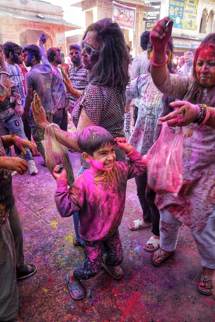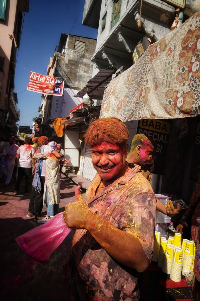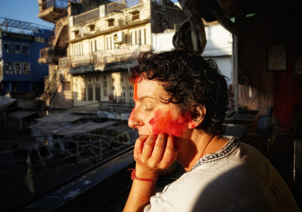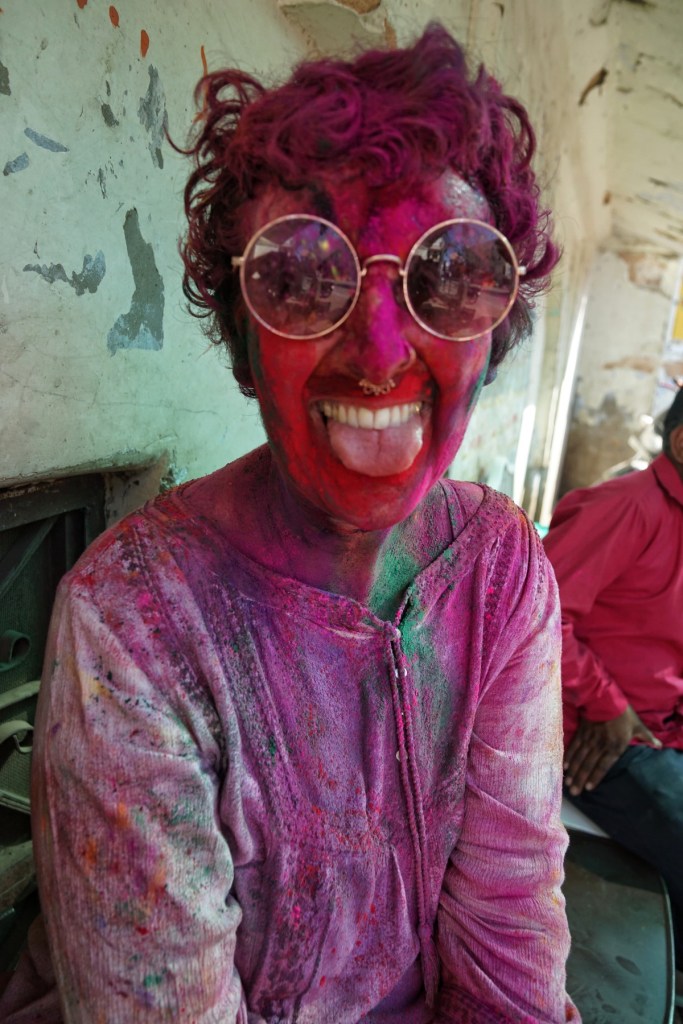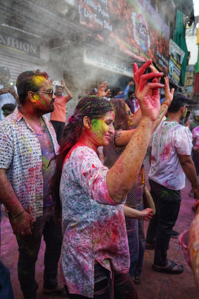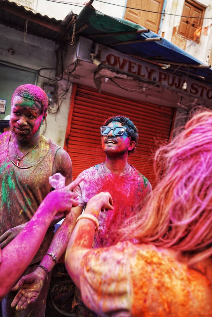 Two days after my wet encounter, Holi begins – the festival of colors, celebrating the arrival of spring, the victory of good over evil, and—maybe most of all—joy. It is associated with Krishna, the playful, mischievous god, known for love, color, and a certain lightness in being. It feels perfect. After the fall, the slipping, the letting go—I meet a god who doesn’t ask for control, but for play. Not transcendence. Just presence, with color on your skin.