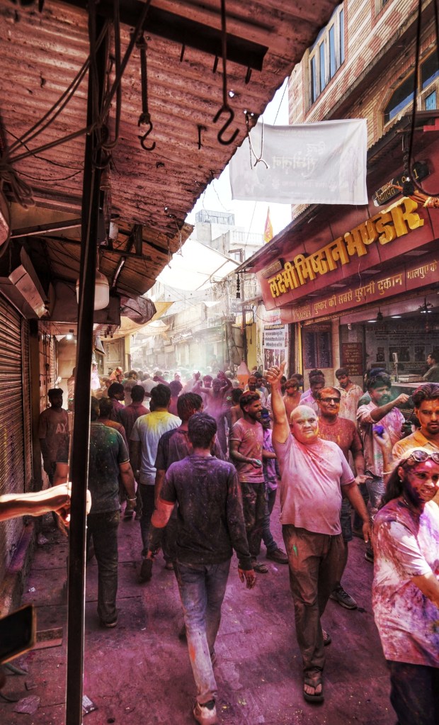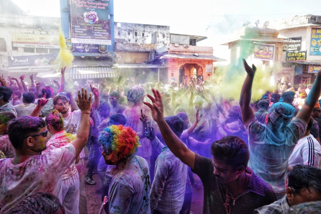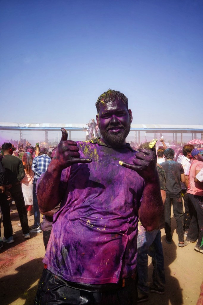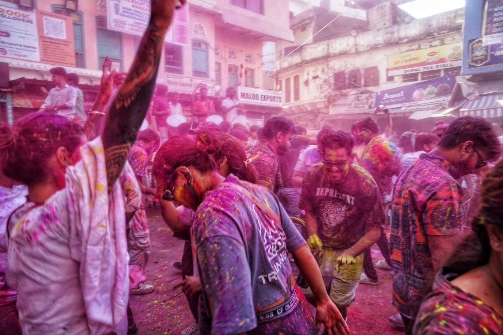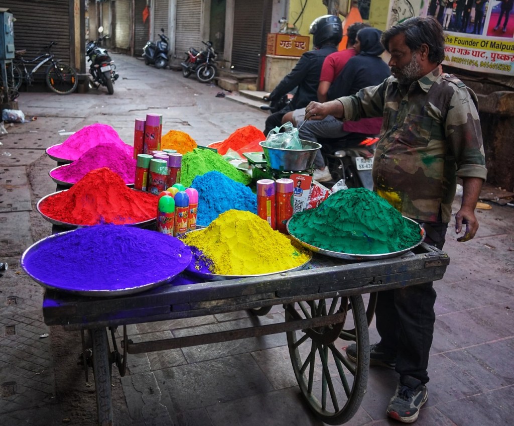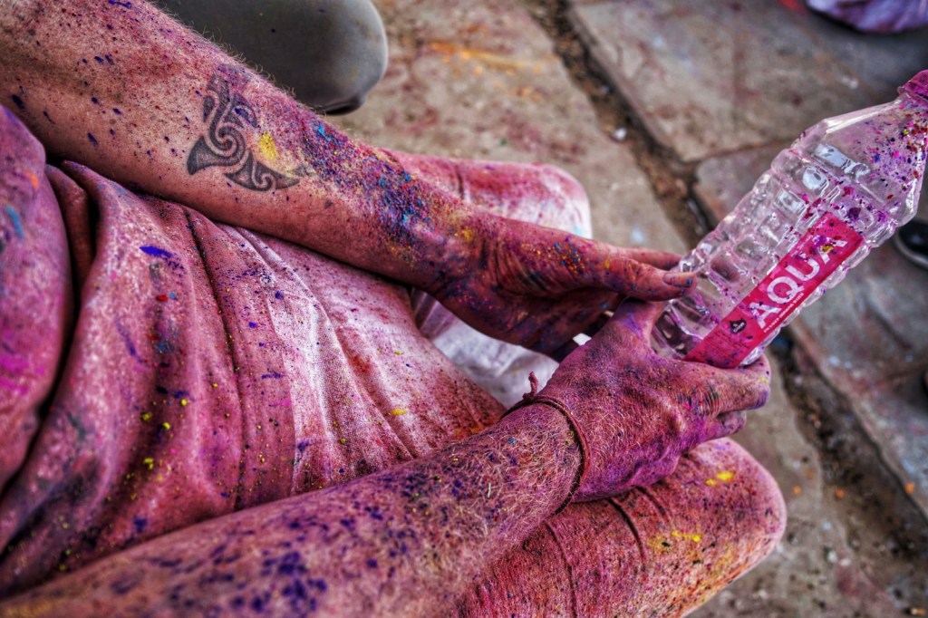 Two days after my wet encounter, Holi begins – the festival of colors, celebrating the arrival of spring, the victory of good over evil, and—maybe most of all—joy. It is associated with Krishna, the playful, mischievous god, known for love, color, and a certain lightness in being. It feels perfect. After the fall, the slipping, the letting go—I meet a god who doesn’t ask for control, but for play. Not transcendence. Just presence, with color on your skin.