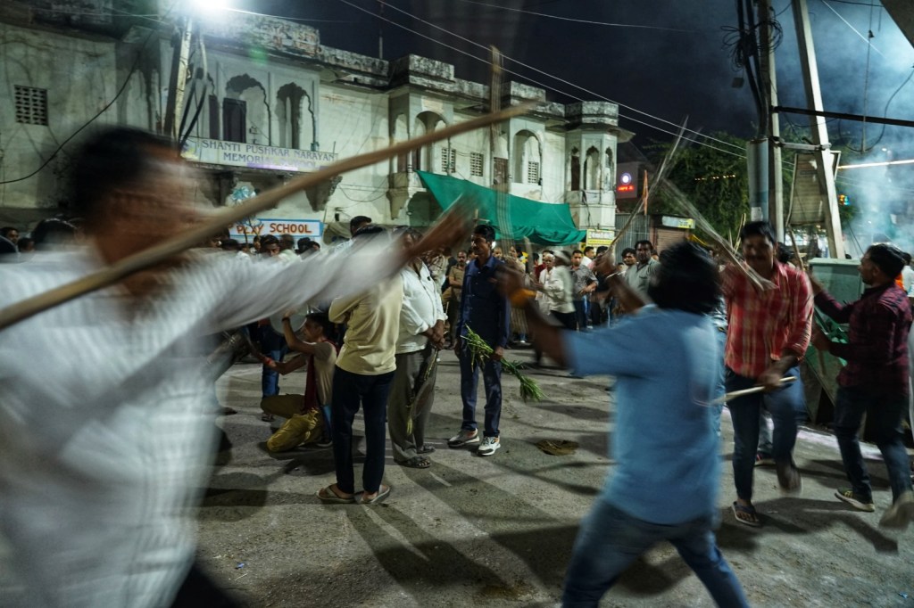 The first thing we encounter is a stick dance. Men moving in a circle, guided by steady drumbeats. Step, turn, strike. Their sticks crash against each other in rhythm—wood on wood. Some are more engaged, some less and still it somehow forms a circle, more or less. Traditionally, these kinds of dances are about energy, protection, sometimes even reenacting mythological battles.