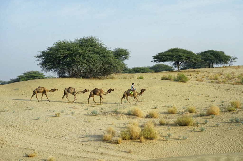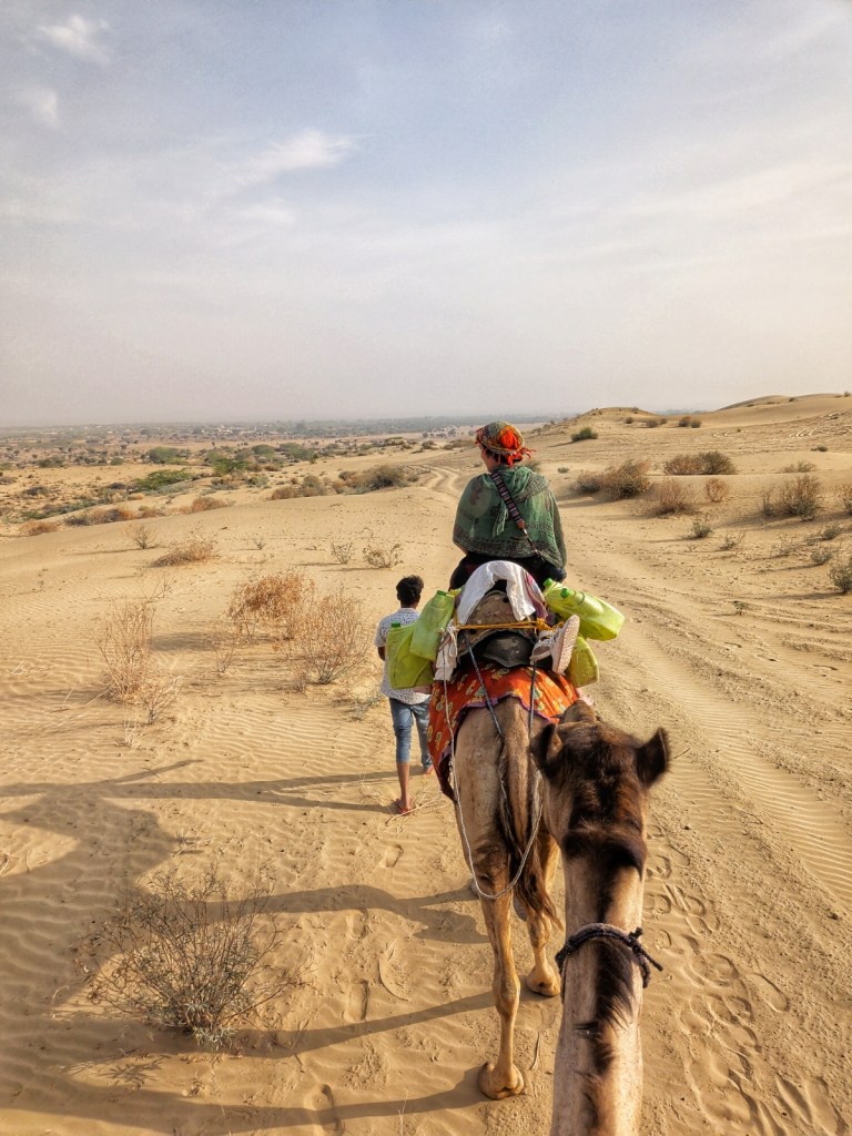 Sarup is originally from Pakistan, from a nomadic family that has lived in the desert for generations. He has been working with camels since he was twelve. Back then, for larger companies — tours with up to twenty camels, each carrying two guests. Now, he runs his own small business. Because the other way felt too much. Too loud. Too hard on the camels. Now he has two of his own, the ones we are rising on. Two more he has borrowed from a friend, but he plans to buy them soon. The four of them make a good group, he says. The younger ones are two years old, still learning from the older ones, who are twelve and fourteen. Each of the young camels costs around 12,000 rupees. By the end of it, I feel a quiet impulse to simply give him the money. He never asked for it. And somehow, I know he wouldn’t accept it anyway.