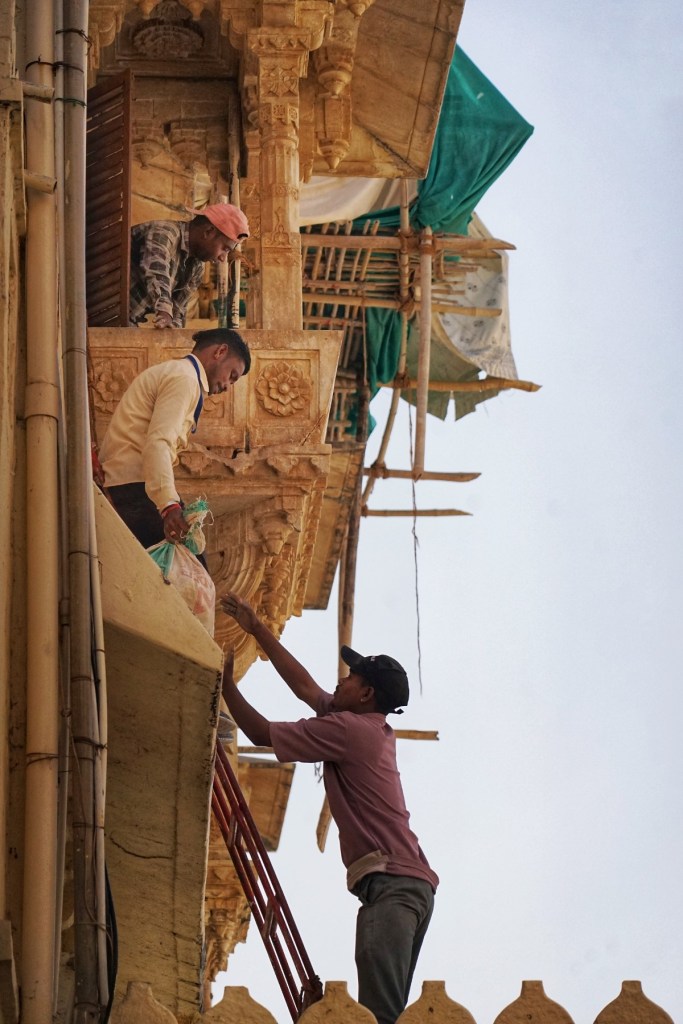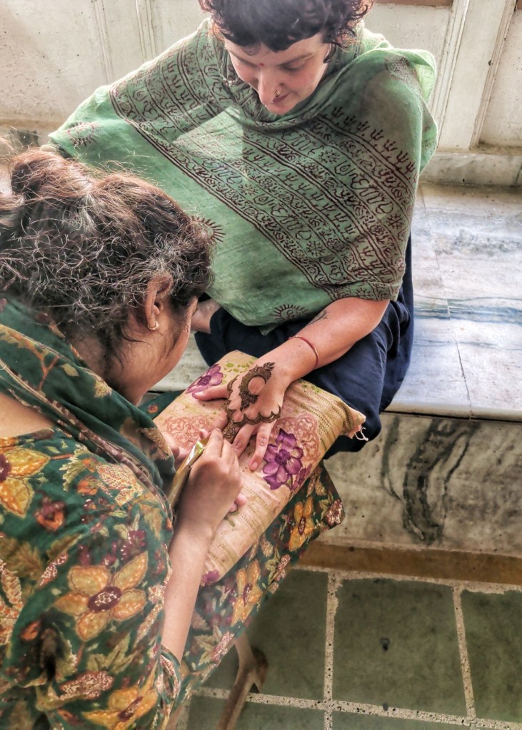 The other thing we notice very fast is how remarkably warm people are here. Of course, we have felt welcomed almost everywhere in India—but here it lingers differently. Softer, maybe. Less insistent, more spacious. Even weeks later, this feeling remains clear in my memory, like a delicious aftertaste. It is experienced in every greetings at the streets and small encounters, almost easy to overlook, and yet they hold the place together for me. A husband and wife with a tiny restaurant and a kitchen behind a simple counter, making fresh paratha. From the first morning on, they welcome us with such warmth that we return every day, almost without question. Then there is the tailor, who takes my worn-out jumpsuit—already threatening to fall apart—and, within just two days, creates three new ones out of light cotton. No fuss, no overpromising. Just skill, precision, and a kind of calm confidence that feels deeply reassuring. And a mehndi artist, surrounded by her family, who all seem to support her work in small, steady ways. In the evenings, we often end up at the same chai place. Willem-Jan drinks a cup, sometimes two. We don’t talk much there. There is no need to. It is simply… pleasant. The kind of place where nothing in particular happens, and yet you find yourself returning.