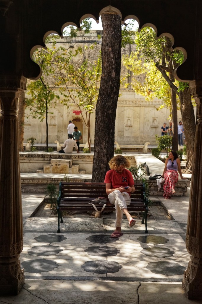 As I sit down to write about Udaipur, it feels surprisingly hard to grasp the place. As the “Venice of India,” it is known for its waterways, lakes, and beauty. And yes, Udaipur has all that—as you will see—but every other place we visited in India left a certain mark on my heart, soul, or body. And Udaipur? I wonder. For us, Udaipur did not only attract because of its famous beauty, but also its geography. It was the perfect stop to split the long, long way to Mumbai from Jaisalmer. Maybe that is the reason why I struggle to grasp it. Was it merely practicalities that led us here? That doesn’t feel entirely true either. We could have skipped Udaipur, taken a short flight from Jaisalmer instead of enduring two long night buses. So there was a reason why we came—just not one that is easy to name.