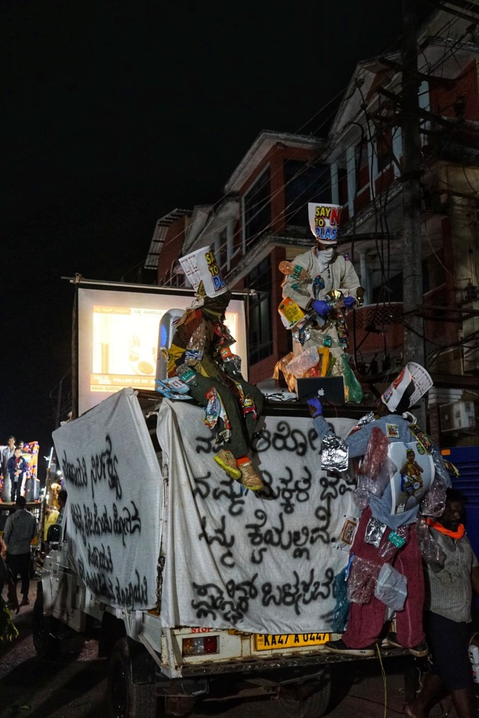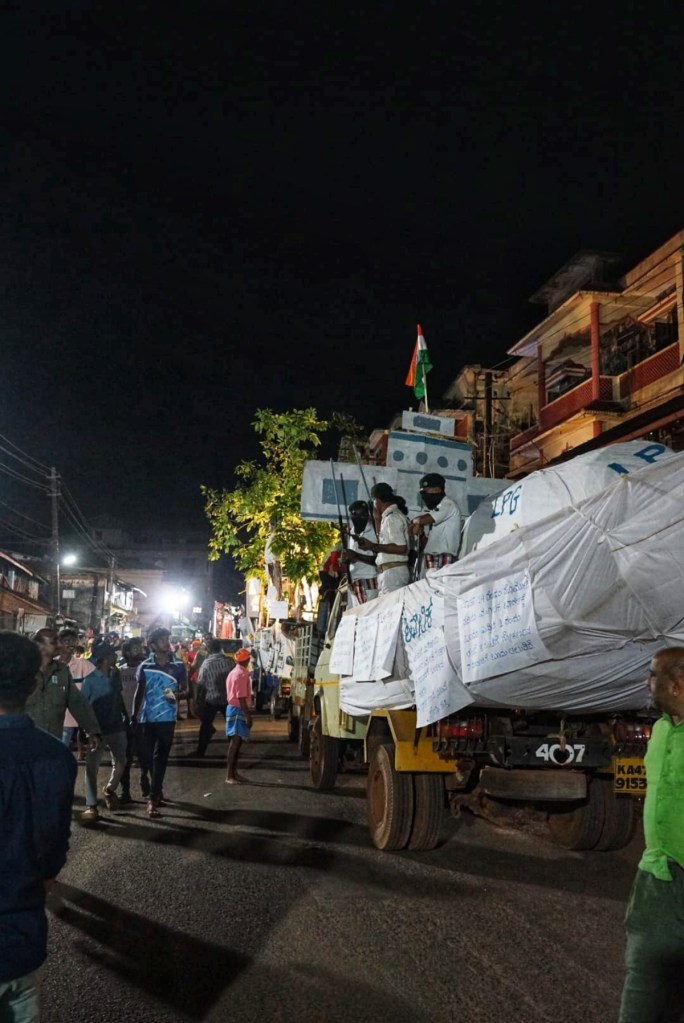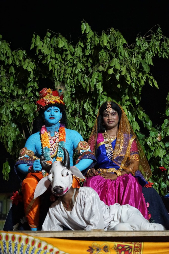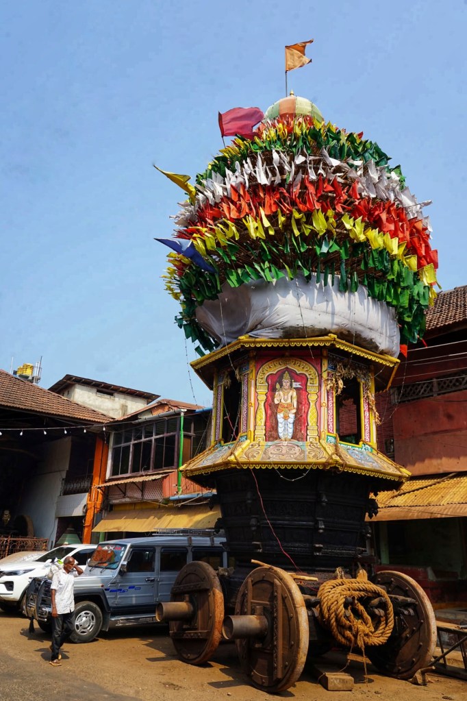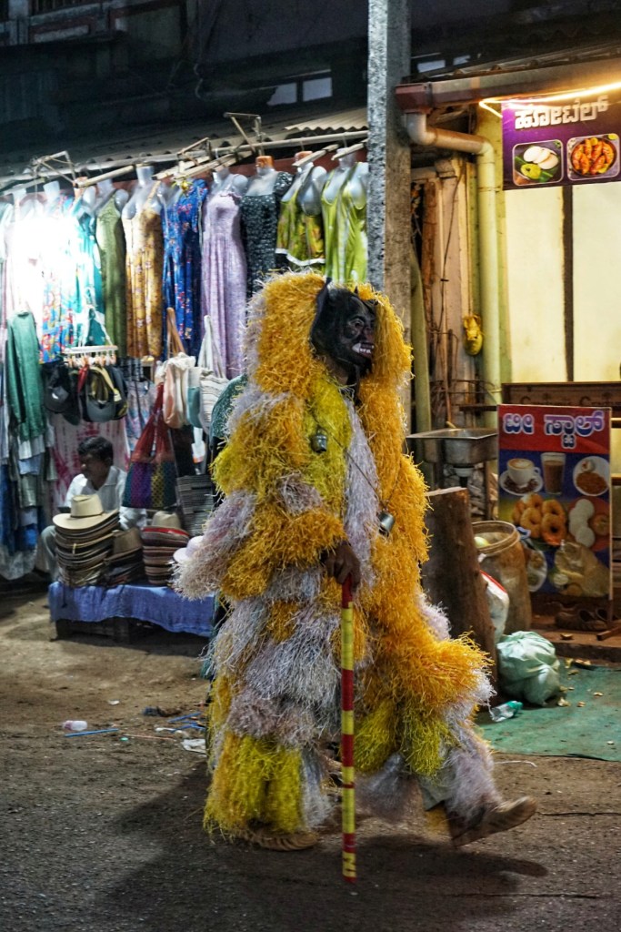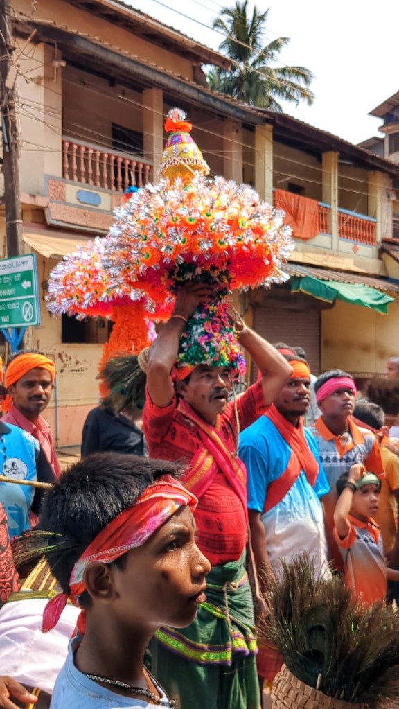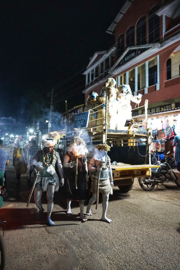 One night we are blessed by experiencing Suggi Habba – a harvest festival celebrated in parts of Karnataka, marking abundance, transition, and gratitude for the land. Here in Gokarna, it unfolds in a way that feels almost like a local, grounded version of carnival. Large wagons roll through the streets, decorated with scenes of political and social commentary. People dress up, music fills the night, and there is dancing—lots of it. It all happens after sunset, when the heat finally loosens its grip. There are no sweets being thrown, no loud spectacle in the way I know it—but something deeper, more rooted. A celebration that belongs entirely to this place.