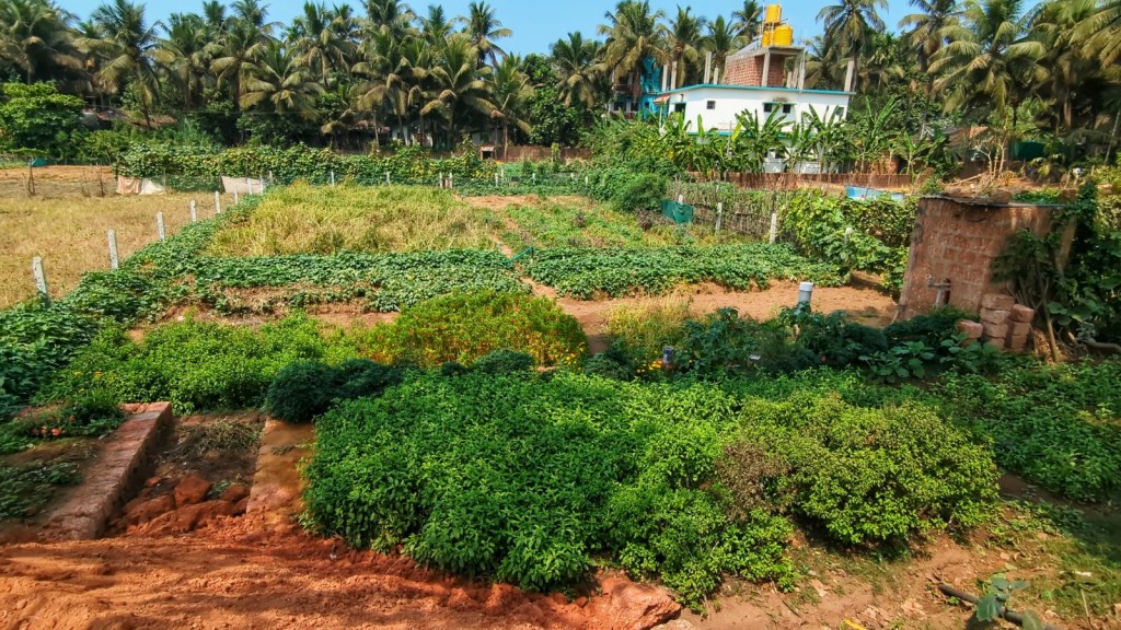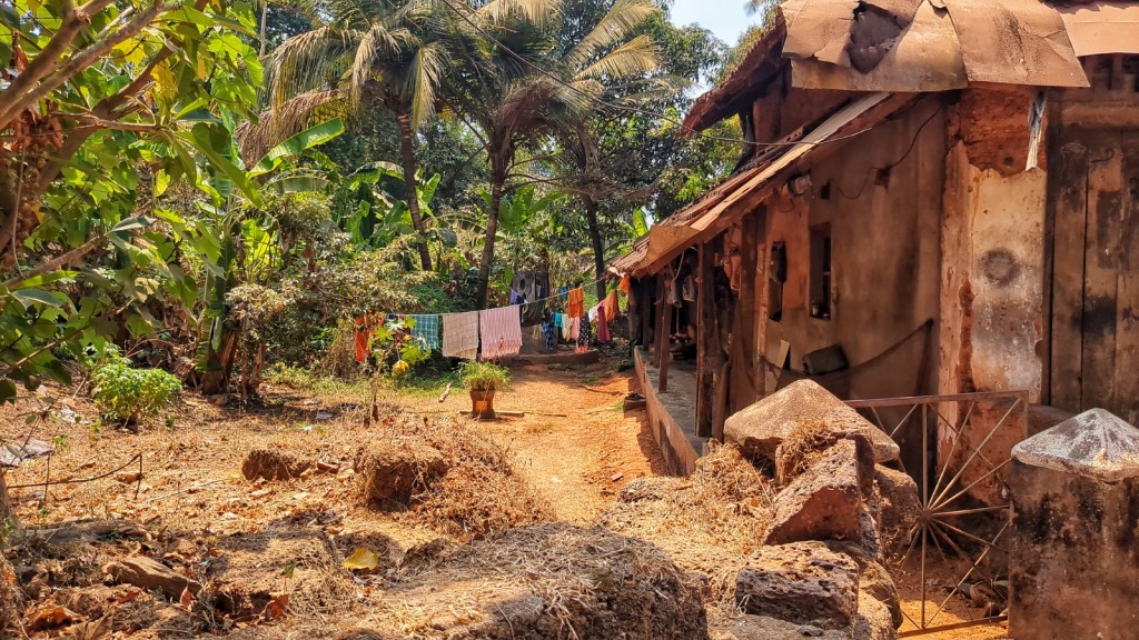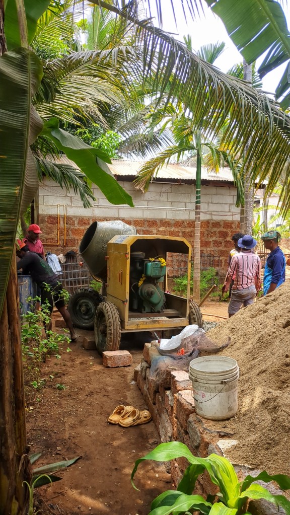 As we arrive, things don’t immediately get easier. We can’t find our place. It doesn’t seem to exist. We walk, ask, wander in circles—but no one speaks English. This is Karnataka. The language here is Kannada. We both don’t know a single word. So we go back and forth until Henning calls the host, who guides us over the phone. The place is tucked between other houses, surrounded by a construction site—holes in the ground, piles of sand, iron rods sticking out of concrete. Is this really it?