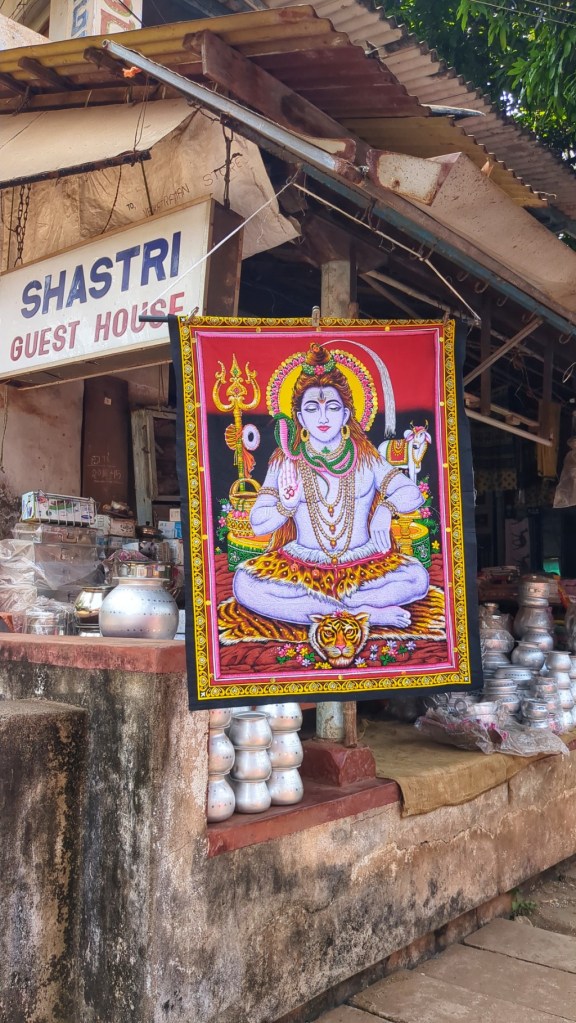 We explore the city and it’s sacred atmosphere. From research I know that Gokarna carries a strong spiritual weight. At its center is the small holy pond near the main temples, surrounded by narrow ghats where pilgrims wash, pray, and sit in quiet ritual. The town is dotted with temples—most prominently the Mahabaleshwar Temple, dedicated to Lord Shiva, along with a cluster of smaller shrines that weave through the streets like an old, living network of devotion. Lord Shiva is a presence I have met on this journey. Alongside Hanuman, he is the one I have actually prayed to during this time in India. So from that perspective, it feels like it should be appropriate—maybe even naturally allowed—to enter these spaces. But these temples come with strict visiting rules. Some say foreigners are not allowed inside at all, others say entry is permitted if you wear appropriate clothing and respect the customs. There is a certain ambiguity around it, and no one explanation feels fully reliable. I wonder if it’s because it feels too daunting, or if there is simply no desire to enter, but every time we pass one of these places, I check inwardly whether there is a pull to go in. But there isn’t. Nothing rises. In the end, I realize the reason doesn’t matter that much. I just don’t feel like going in. And that, too, is completely okay.