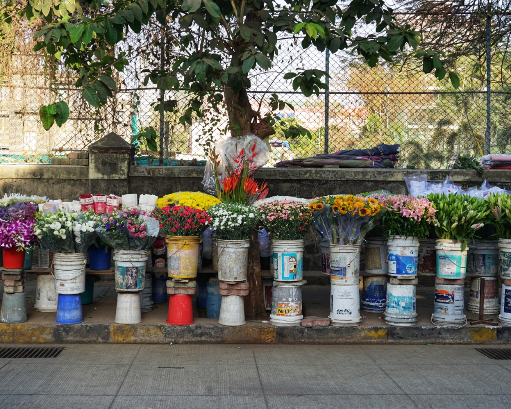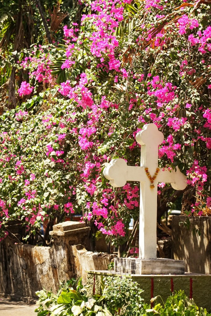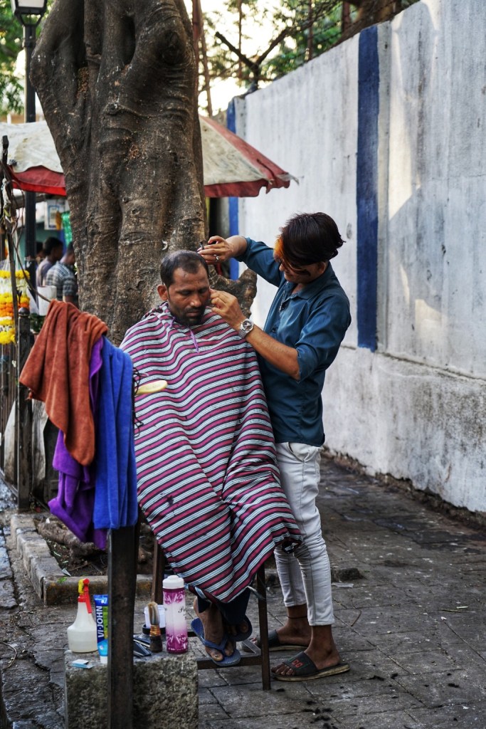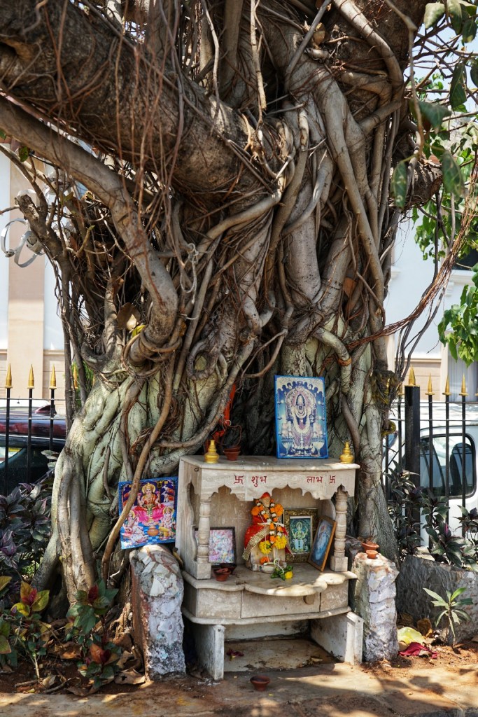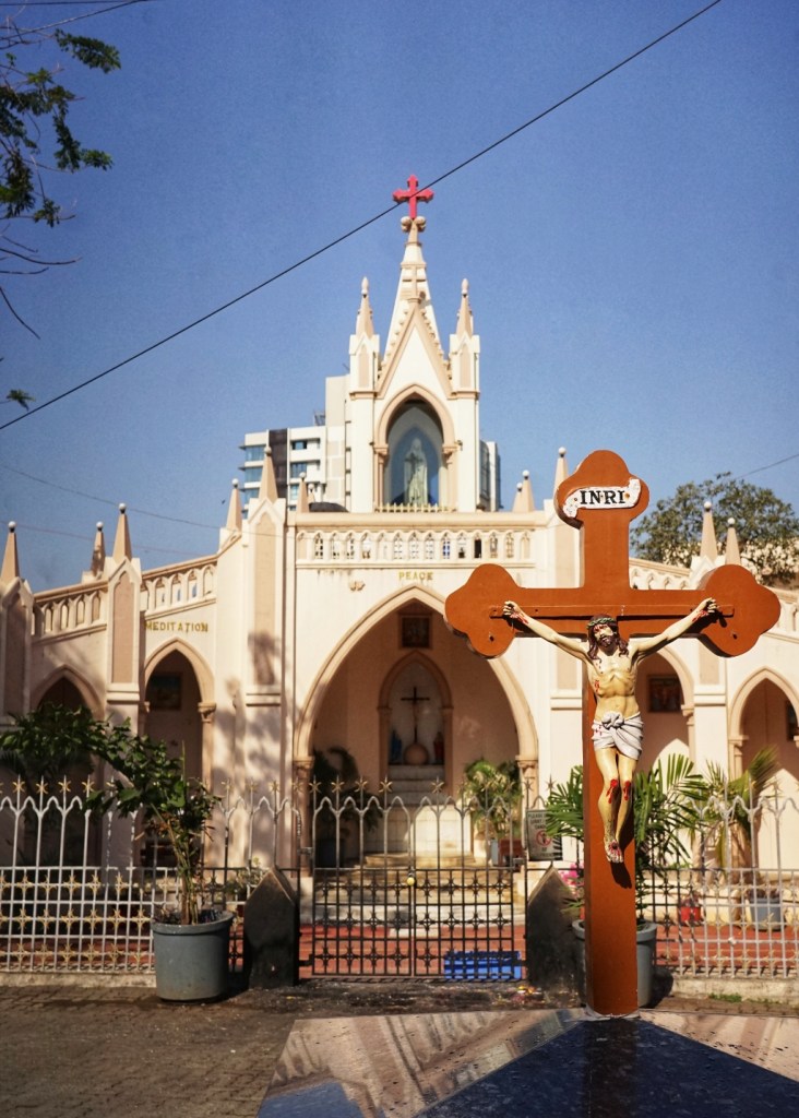 Here we visit the Basilica of Our Lady of the Mount. It is dedicated to Mary, the mother of Jesus — venerated here as Mount Mary, a figure of protection, compassion, and quiet strength. The church itself sits elevated above Bandra West, removed just enough to feel separate, but never fully detached from the city below. Although Bandra is also strongly Hindu and Muslim, represented also in temples and mosques I notice more signs of Christianity as we walk through Bandra. Small ones, tucked between buildings, behind gates, on corners you almost miss. Diffenrent to the crosses – they are everywhere.