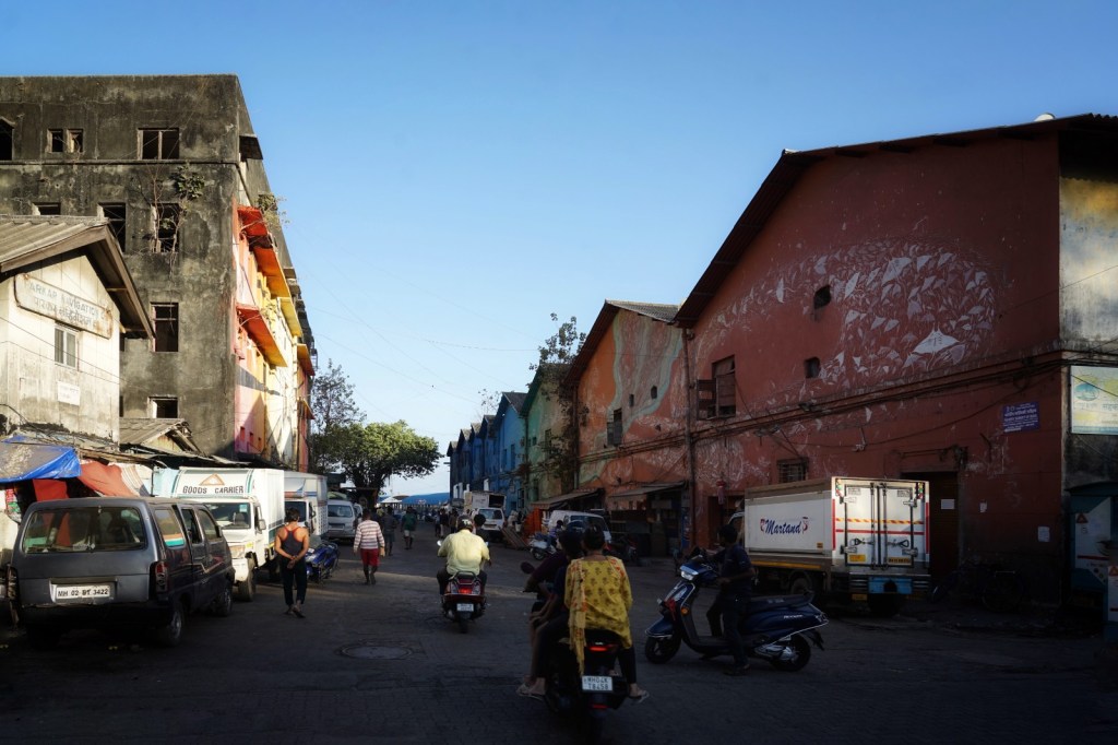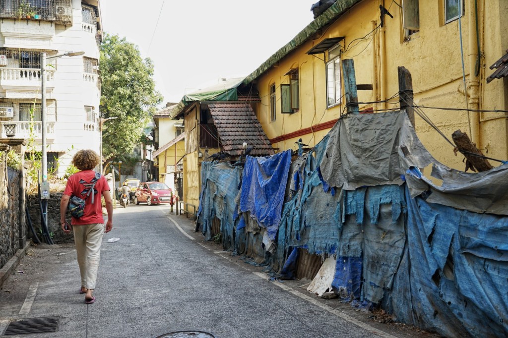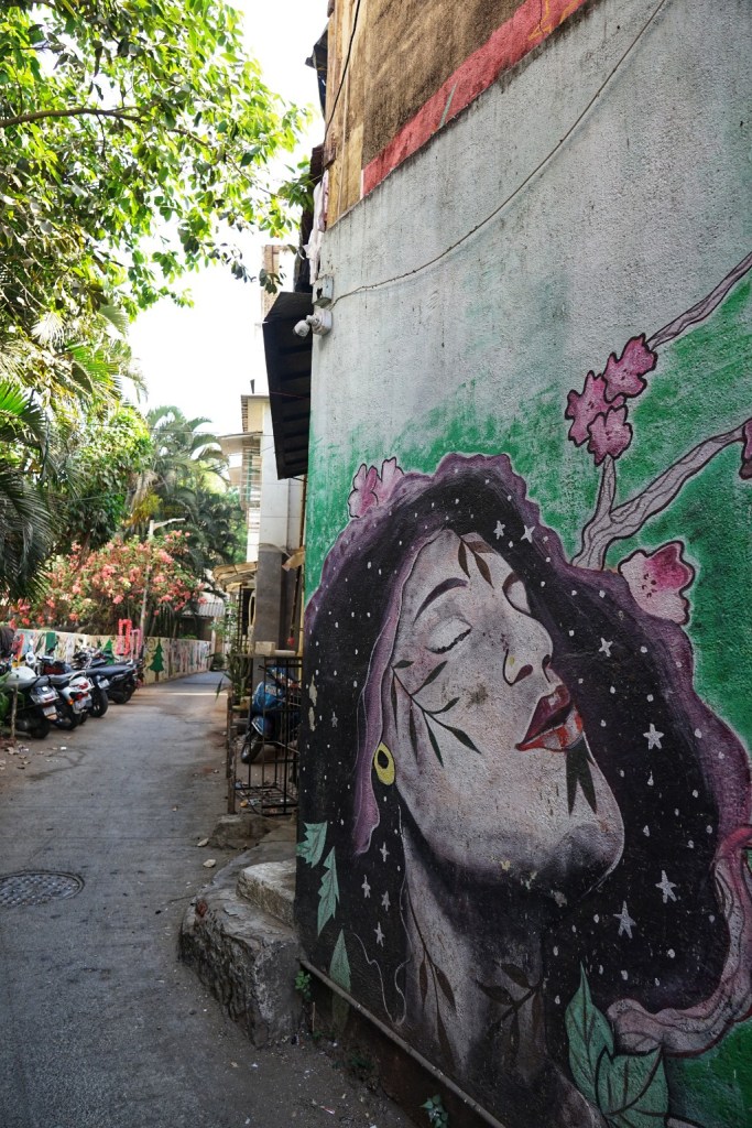 On our first day, Willem-Jan and I stay in Bandra West. It is a winding, layered neighbourhood of Mumbai — full of old, half-decaying yet still beautiful houses that seem to whisper fragments of old Bombay and feels like a soft entry point— leafy in parts, almost spacious, with cafés, old Portuguese-influenced houses, street art on cracked walls, and that strange coexistence of calm corners and constant movement. It feels slightly filtered version of what I expected.