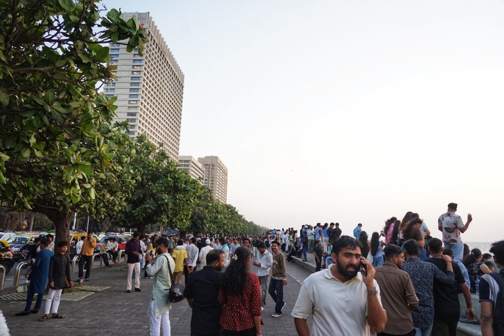 In the evening, we visit Marine Drive and watch the sunset. With so. Many. Other. People. This seems to be one of the city’s main events. A long curved boulevard along the Arabian Sea where people come not so much to do something, but simply to be there. To sit. To walk. To snack. To stare into the distance. To meet someone. To avoid someone. To let the day end in company.