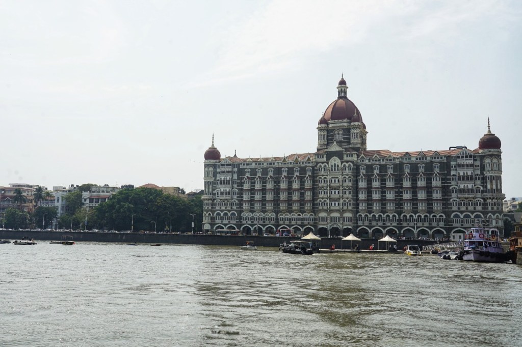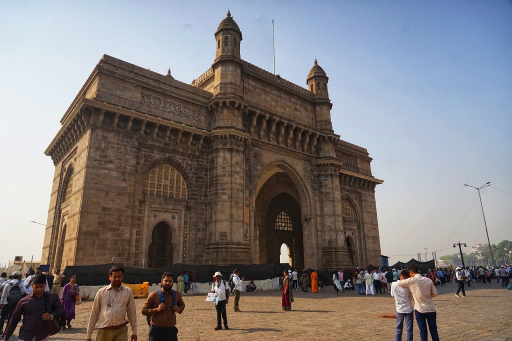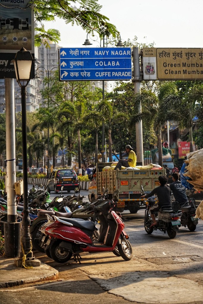 This impression follows me as we move on to Colaba. The area sits at the southern tip of Mumbai, stretching out into the sea, and carries a different texture than Bandra. The streets feel more structured — wide in parts, lined with old buildings from another time. Faded facades, balconies with peeling paint, shutters that have seen decades pass. In between, cafés, small shops, street vendors, and the constant movement of people weaving through it all. There is a certain openness here, compared to other parts of the city. You can walk longer stretches without losing your sense of direction. Landmarks appear — the Gateway of India, the Taj Mahal Palace Hotel — almost like fixed points in a city that otherwise keeps shifting.