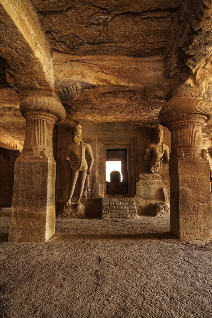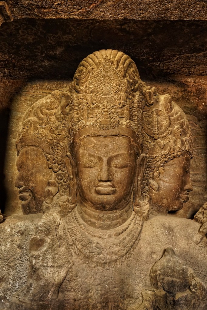 The Elephanta Caves date back roughly to the 5th to 8th century and are dedicated mainly to Shiva. Carved directly into basalt rock, they are not built in the usual sense so much as excavated — revealed by removing everything that was not temple. That alone always impresses me. To create by subtraction. To shape space out of darkness and patience. Most striking of all is the great three-headed form of Shiva, the famous Trimurti. Serene and immense, it represents different aspects of the divine: creation, preservation, destruction. Or perhaps, more honestly, the truth that these things are never separate. Time has damaged parts of the caves. Portuguese soldiers are said to have used some sculptures for target practice centuries ago — a depressingly consistent theme in colonial history: arrive somewhere ancient, misunderstand it, then shoot at it. And yet much remains.